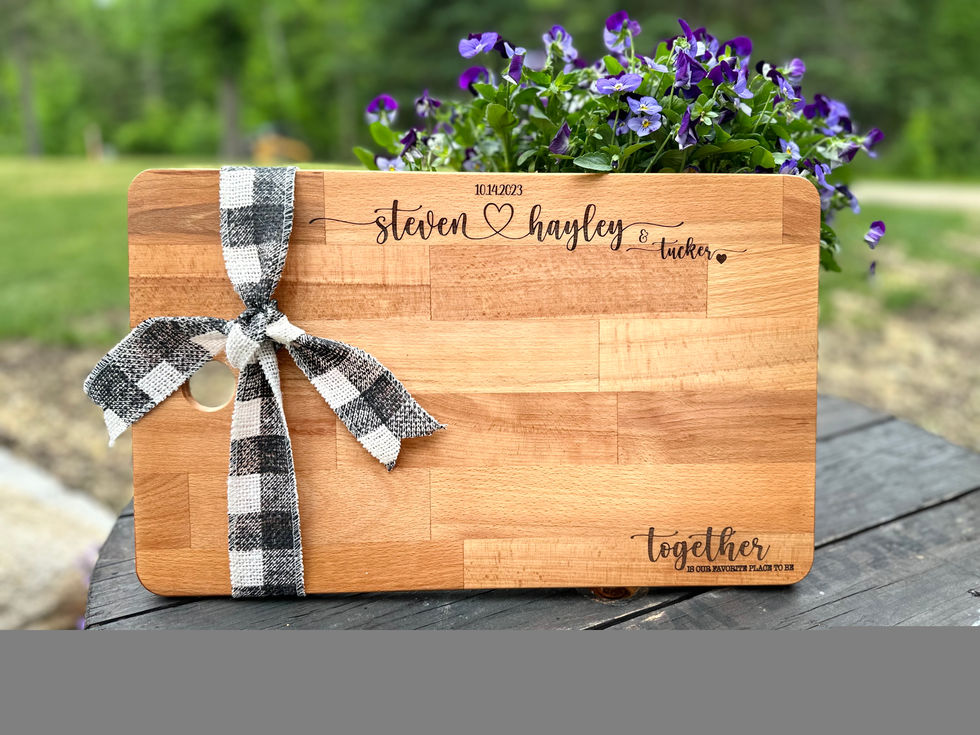 Just Add Vodka Designs offers new charcuterie and cutting boards with special laser designs. Designs are available, but the boards may vary based on material availability to ensure high quality.
